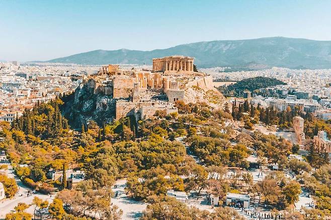 그리스 여행 코스의 시작은 인류 문명의 뿌리인 아테네에서 시작됩니다. 도시 어디에서나 고개를 들면 보이는 아크로폴리스는 보는 것만으로도 압도적인 위용을 자랑하고, 특히 파르테논 신전 앞에 서면 수천 년 전 유명했던 철학자들이 이곳을 거닐며 진리를 논하던 장면이 머릿속에 절로 그려집니다.