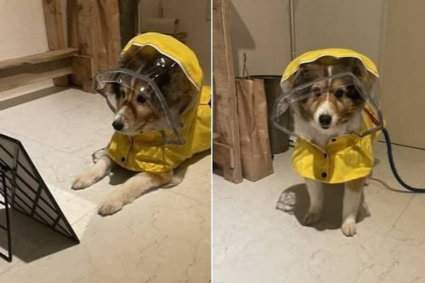 집사는 비가 조금 내리는 날에도 강아지와의 일상적인 산책을 빼놓지 않는다고 합니다. 이날도 마찬가지로 비가 살짝 내렸지만 산책하기엔 충분한 날씨였기에, 집사는 강아지에게 노란색 우비를 입히고 외출 준비를 했습니다.