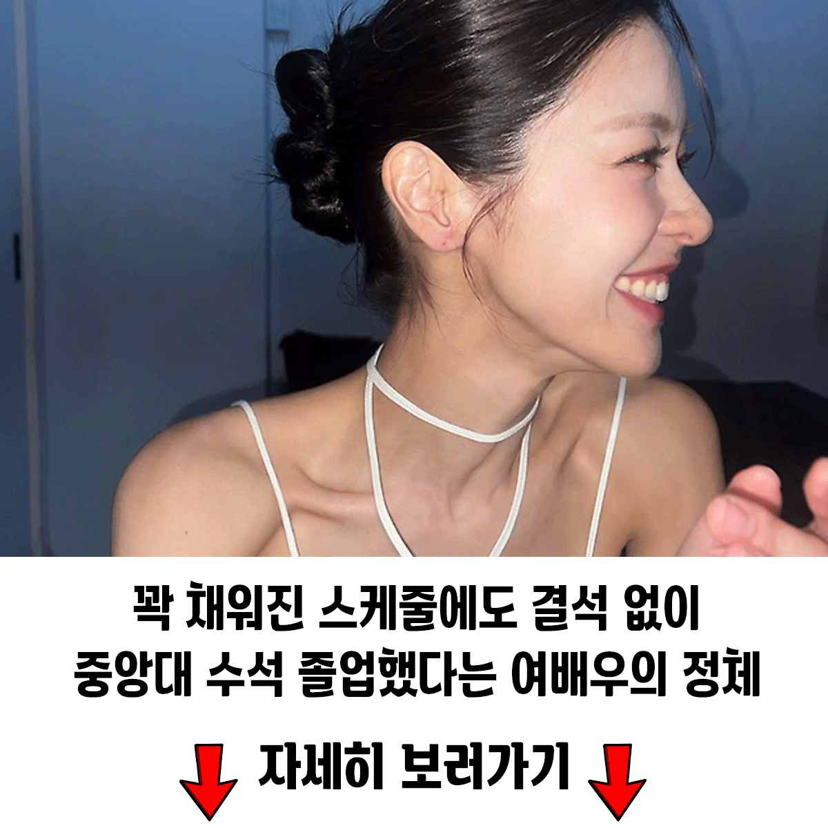 블랙 톤의 슬리브리스와 밴드 스타일링으로 자연스러운 시크함 강조