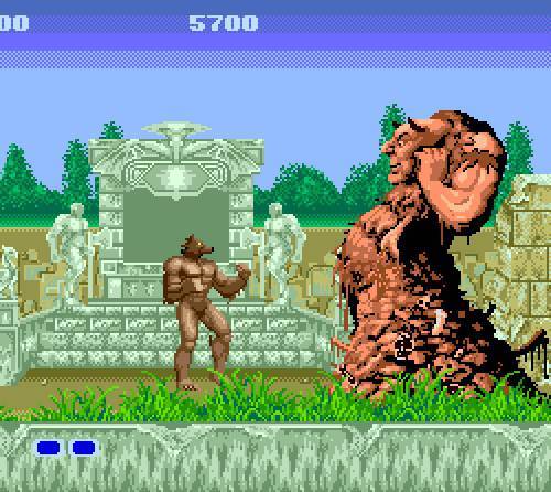 검떠: 이 게임은 전형적인 짐승으로의 변신물이라고 보면 되죠. 아마도 당시 유행하던 영화 '늑대인간'의 영향을 받은 게 아닌가 싶은데요, 건장한 청년이 스테이지를 진행하다가 흰색 늑대를 해치운 후, 그 흰색 늑대가 내뱉는 구슬을 먹어서 파워업을 거듭하는 거죠.