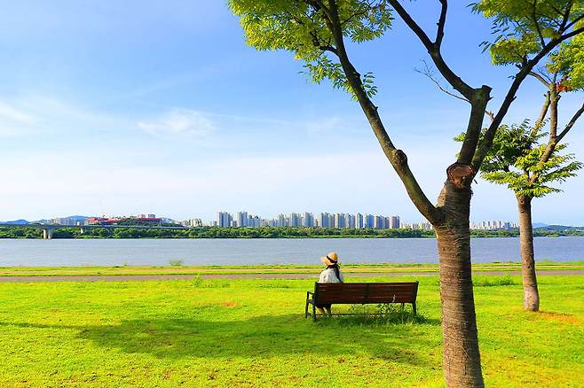 한국의 정치, 언론, 금융의 중심부인 여의도에 자리한 여의도 한강공원은 광활한 한강 건너편 높다란 빌딩 숲이 보이는 도심 속 녹지공간입니다.
