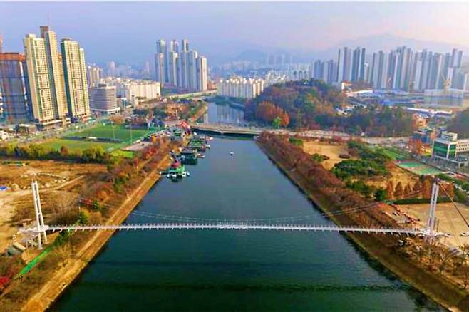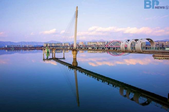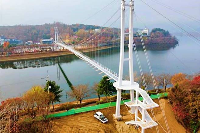 강원 춘천시 의암호변에 새로운 출렁다리가 조성되어 시민들의 이목이 집중됐다.