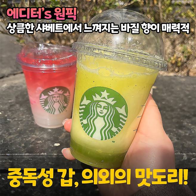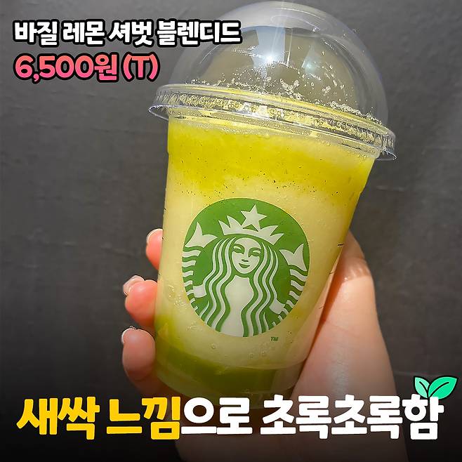 이번에도 진심으로 맛보고 즐긴 밥심언니의 원픽은 고민할 것 없이 <바질 레몬 셔벗 블렌디드>였어요! 스타벅스 음료 중에서 거의 처음 맛보는 신선한 조합인데다, 재료들의 합까지 좋아서 반전이었달까요? 은은하게 풍겨오는 바질 향 때문에 중독성도 갑이었다구요!