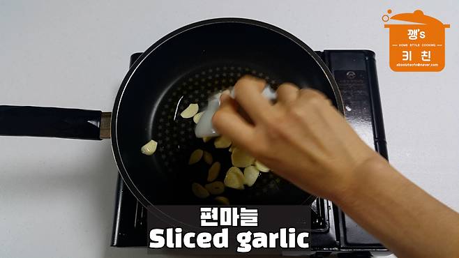 편 썬 마늘을 넣어 볶아주세요