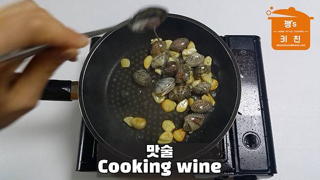 6. 바지락 넣고 맛술 2큰술 넣고 볶기