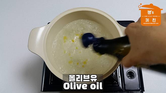 3. 끓는 물에 소금, 올리브유 넣고