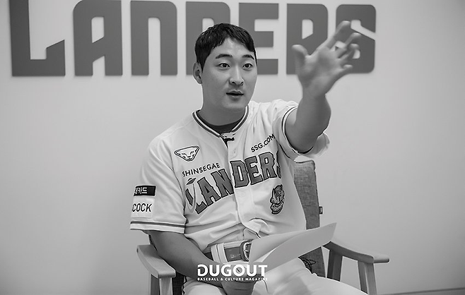 저는 항상 무슨 말이라도 하고 있어서 어떤 상황에 무슨 말을 했는지가 정확히 기억이 안 나요. 딱히 알맹이가 없는 말들이기도 하고요. 제가 말을 거는 사람이 너무 많아서 누구랑 얘기했는지도 기억 못 해요. 대화는 주로 강민이 형이나 (추)신수 형하고 해요. 제가 형님들이랑 얘기가 잘 통하거든요. 제가 또 말을 잘하잖아요. 잘 맞춰드리죠. 이 모든 게 사회생활 아니겠습니까?