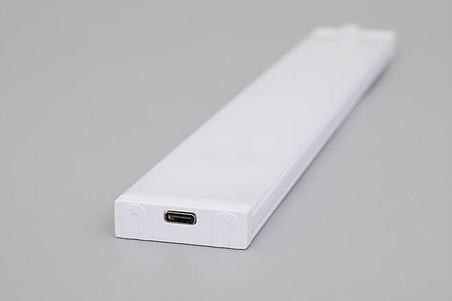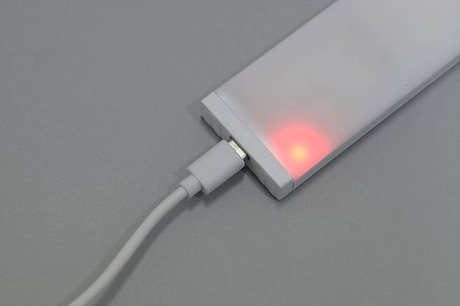 모락 넬리 스틱 LED 무선 센서등을 사용하려면 우선 내장 배터리를 충전해야 한다. 충전 케이블을 연결하면 끝부분에 붉은색 LED가 켜지면서 충전이 진행되며, 충전이 완료되면 LED가 꺼진다. 내장 배터리는 800mAh이다.