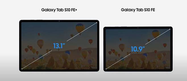 갤럭시탭 S10 FE는 이전 모델과 같은 LCD 패널과 화면 주사율 최대 90Hz를 지원한다. 이렇게 보면 변화가 없어 보이지만 플러스 모델 화면 크기가 기존 12.4인치에서 13.1인치로 0.7인치 커졌다. 13.1인치는 S10 플러스 12.4인치와 S10 울트라 14.6인치의 중간 포지션이라 울트라의 화면 크기는 부담스러워 구매를 주저했던 소비자에게 새로운 선택지가 될 수 있다.