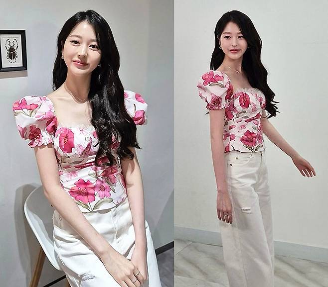 배우 장다아가 화사한 플라워 패턴 룩으로 눈부시게 예쁜 미모를 뽐냈습니다.