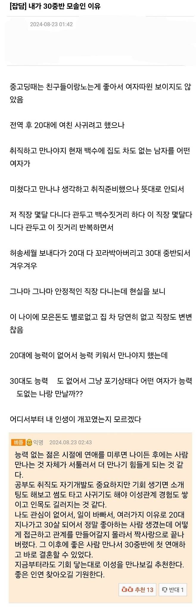어떤 남자가 30대 중반이 될 때 까지 모태솔로인 이유