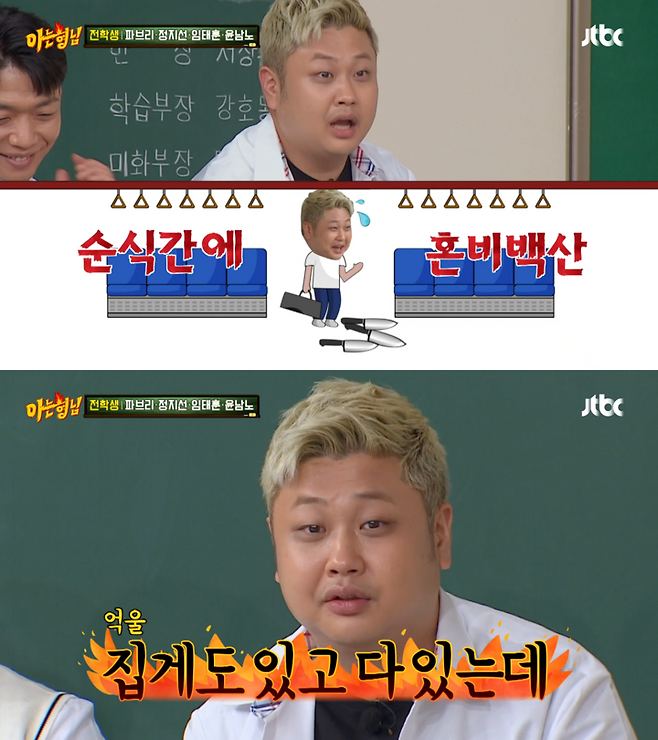 이어 지하철에서 생긴 일화를 풀어낸 윤남노 셰프는 "지하철에서 요리 칼 가방을 들고 가다가 밑이 뚫려 칼이 와르르 쏟아졌었다. 그런데 내 눈빛을 보고 사람들이 꺄 소리지르면서 도망가더라. 하필 막차라 사람도 많았다"며 "마침 기장님도 오셔서 제가 요리사라고 했는데 뭔가 안 믿는 것 같았다. 요리 사진이 올라간 SNS 사진도 보여줬고, 집게도 있고 요리용 칼이라고 해명했는데도 같이 가줘야겠다고 하시더라"라고 당시 일화를 풀어내 폭소를 안겼다.