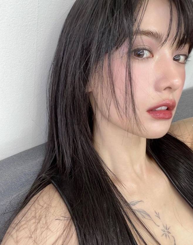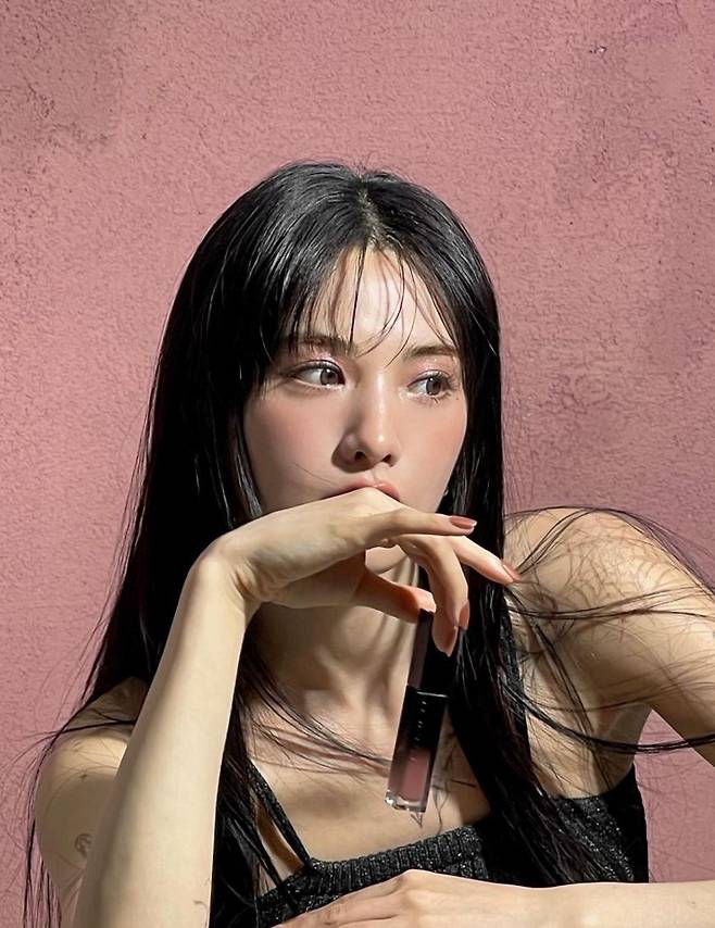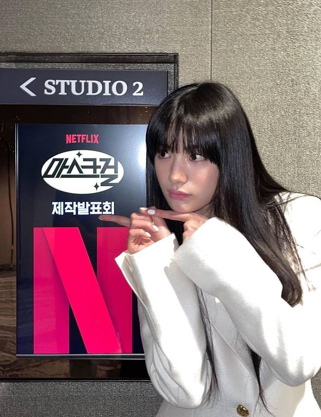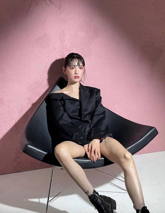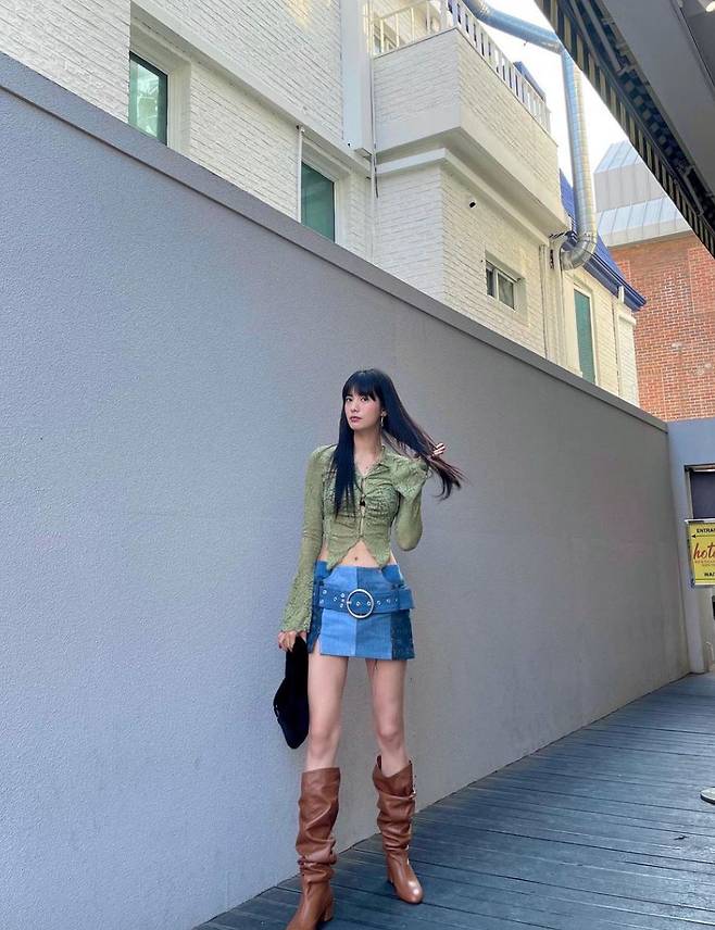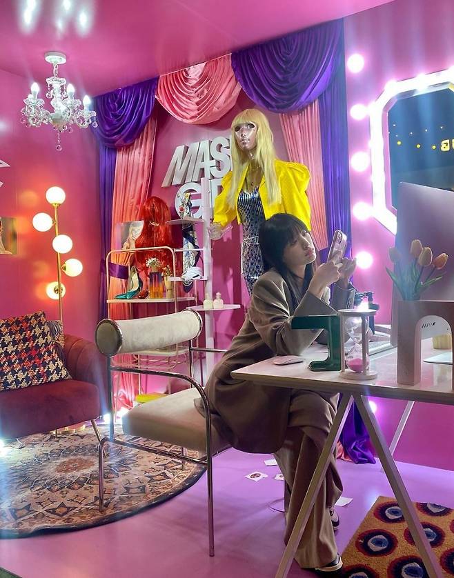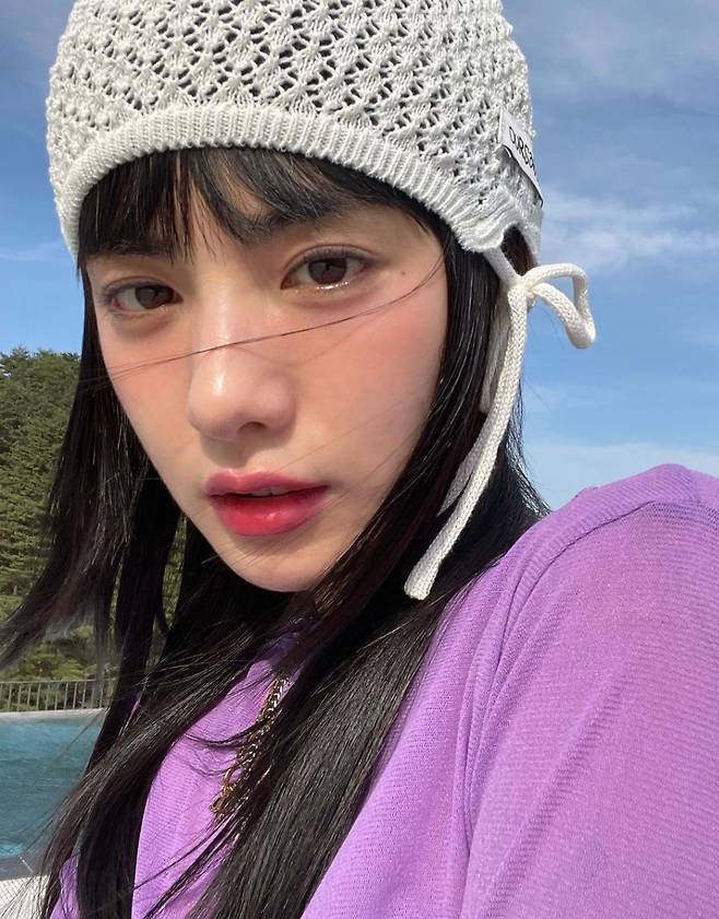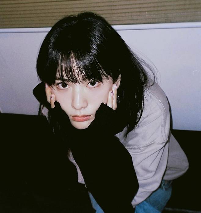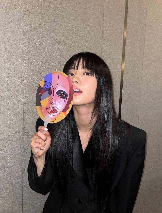 풀뱅을 더해 힙한 스타일을 완성했어요.