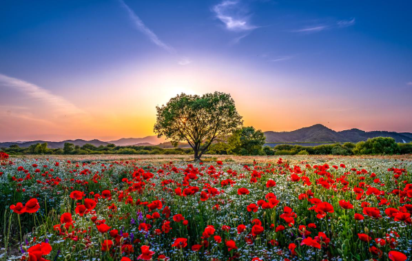 양귀비꽃밭: 빨강·분홍·흰색 양귀비가 군락으로 장관을 이룸