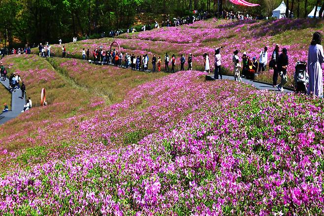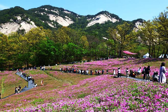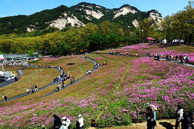 매년 4월이면 서울 하늘 아래 가장 화사한 색이 깃든다. 바로 서울 노원구 불암산 힐링타운 철쭉동산이다.