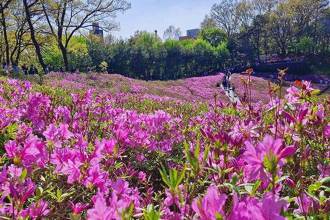 매년 4월이면 서울 하늘 아래 가장 화사한 색이 깃든다. 바로 서울 노원구 불암산 힐링타운 철쭉동산이다.