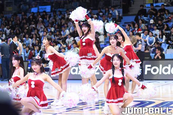 [점프볼=고양/박상혁 기자] 25일 고양 소노 아레나에서 열린 2024-2025 KCC 프로농구 고양 소노와 원주 DB의 경기, 소노 치어리더가 크리스마스 날의 승리를 위해 응원을 펼치고 있다.
