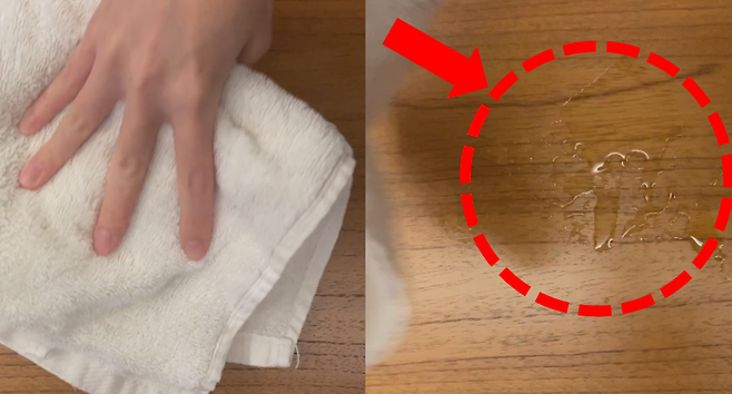 다만, 수건의 경우 기름막 코팅에 의해 본래 기능인 수분 흡수력이 떨어지게 됩니다.