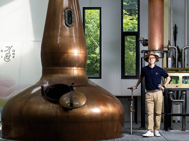 도정한 기원 위스키 증류소 대표는 직접 주문 제작한 ‘롤스로이스급’ 증류기 앞에서 증류 과정을 설명하며 밝게 웃었다.