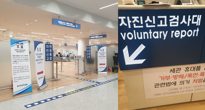 면세한도 물품에 대해서 자진신고를 하는 방법은 간단합니다. 모든 입국자에게 부과되던 신고서 작성 의무가 지난 5월 사라져 '세관 신고 있음' 통로로 이동해 휴대품 신고서를 작성해야 하는데요. 모바일 또는 종이 신고서를 제출하면 됩니다. 예상세액을 알고 싶다면 관세청 홈페이지에서 확인할 수 있습니다.