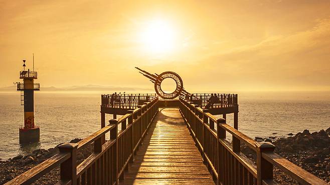 전망대 중앙에 설치된 '석양을 가슴에 담다' 조형물은 석양을 정확히 맞추어 설계된 구조로, 원형 프레임 안에 천천히 걸려드는 태양은 그 자체로 하나의 예술 작품이 됩니다.