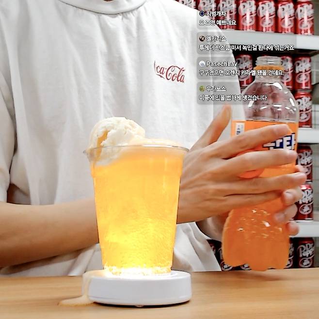 한국 편의점에 왔는데 고향의 맛(?)이 그리울 사람들을 위한 레시피다. 얼음컵에 환타를 따른 후에 투게더 바닐라 아이스크림을 얹는다. 그 위에 다시 환타를 부어 거품을 만들고 섞어서 마시면 미국맛이 난다. 정확히 말하면 '크림시클'이라고 불리는 미국 오렌지 아이스크림 맛이 난다고 할까?
