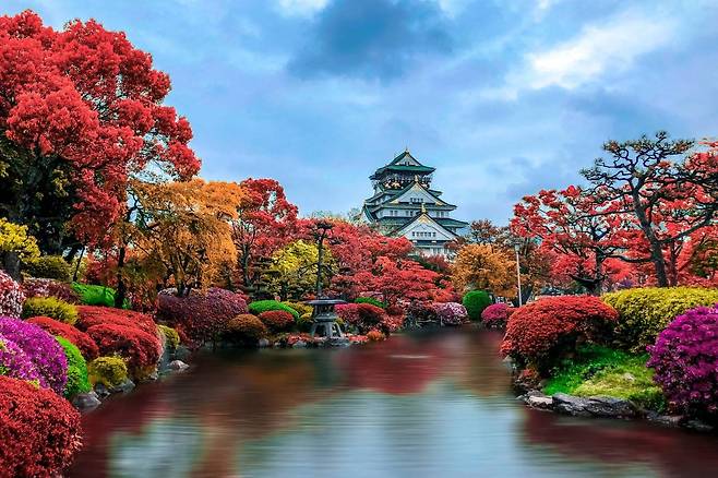 해외여행의 첫 시작으로 가장 많이 선택한다는 오사카! 규슈 지역과 마찬가지로 11월 초순부터 12월 초순까지 단풍 시기로 볼 수 있습니다. 텐노지공원과 오사카성 등 곳곳에서 즐길 수 있습니다.