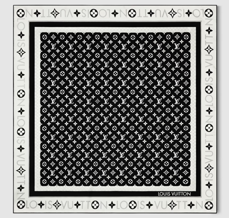 마지막으로, 그녀가 선택한 스카프는 실크 100% 소재로 고급스러운 광택감을 자랑하며, 클래식한 패턴과 다미에 테두리 디자인이 조화를 이루어 세련된 느낌을 더했다.