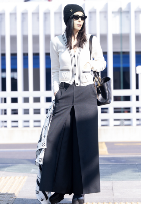 공항에서 무심한 듯 자연스럽게 매치한 비니가 그녀의 세련된 스타일을 더욱 강조했다.