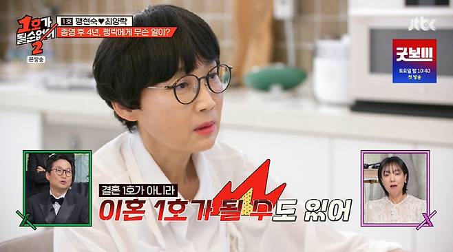 팽현숙은 "자꾸 덤비고 기분 나쁘게 하면 결혼 1호가 아니라 이혼 1호가 될 수 있다"면서 "당신 때문에 이상한 소문까지 돈다. 사람들이 내가 미친X이라더라"고 말해 모두를 놀라게 했다.