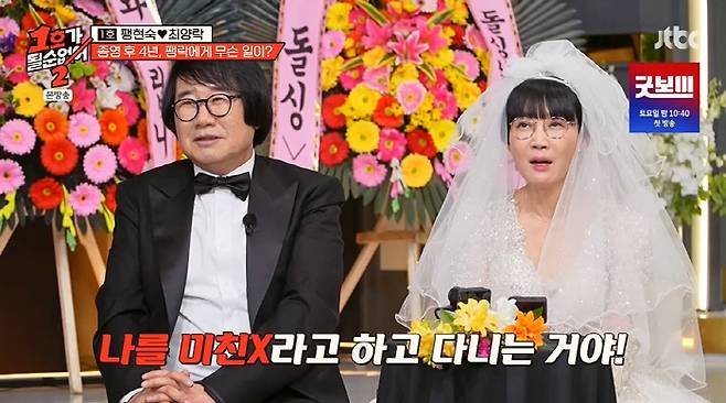 팽현숙이 "최양락이 사람들에게 내가 미친X이라고 했다"고 폭로했다.
