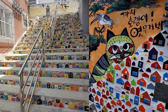 특히 지난 2017년에는 부산의 감천문화마을에 재능기부를 통해 타일을 활용한 벽화를 꾸미기도 했는데요. 해 뜨는 언덕 꿈꾸는 마을이라는 뜻의 작품 '해꿈'은 현재까지도 많은 관광객들이 찾는 포토존으로 사랑받고 있습니다.