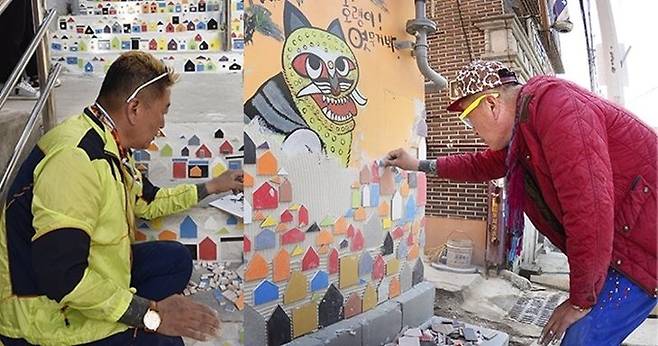 특히 지난 2017년에는 부산의 감천문화마을에 재능기부를 통해 타일을 활용한 벽화를 꾸미기도 했는데요. 해 뜨는 언덕 꿈꾸는 마을이라는 뜻의 작품 '해꿈'은 현재까지도 많은 관광객들이 찾는 포토존으로 사랑받고 있습니다.