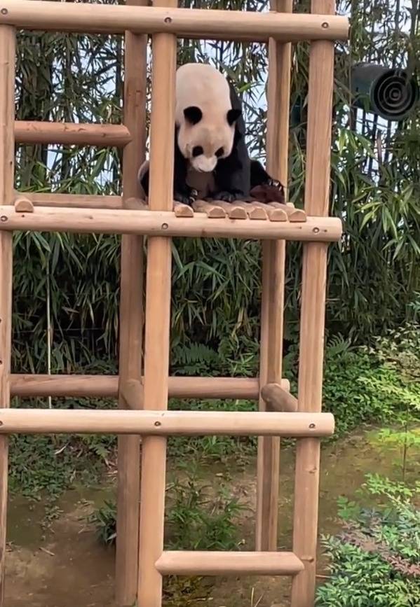 이날 러바오는 여느 때처럼 판다월드 방사장에 출근해 돌멩이들을 만났는데요. 여전히 러미안을 사랑하는 러부지는 식사 후 정글짐에서 쉬고 있었는데요. 러미안에 누워 꿀맛같은 휴식을 취하던 것과 달리 이날 러바오는 헛구역질을 하더니 흰색 액체를 토해내는 모습이었습니다.