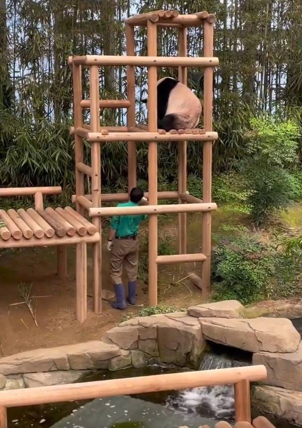 이날 러바오는 여느 때처럼 판다월드 방사장에 출근해 돌멩이들을 만났는데요. 여전히 러미안을 사랑하는 러부지는 식사 후 정글짐에서 쉬고 있었는데요. 러미안에 누워 꿀맛같은 휴식을 취하던 것과 달리 이날 러바오는 헛구역질을 하더니 흰색 액체를 토해내는 모습이었습니다.