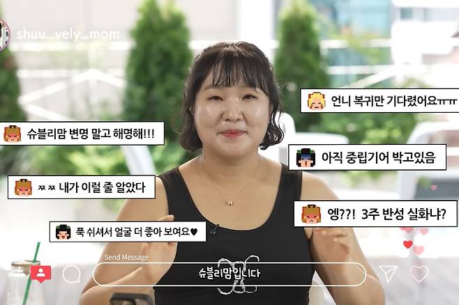 지난 5월에 업로드한 영상에서 공구 과정에서 생긴 문제로 인해 논란에 오른 슈블리맘이 3주 간의 자숙을 선언한 이후 이어지는 내용으로 보입니다.😜