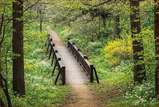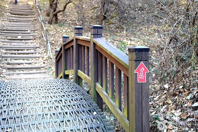 또한 길 대부분이 흙길과 데크길로 이어져 있어 미끄럼 위험이 상대적으로 적은 편입니다. 이외에도 중간중간 쉼터가 마련돼 있어 숨을 고르며 천천히 풍경을 즐기기에 좋습니다. 왜냐하면 이곳은 빠르게 오르는 산이 아니라, 천천히 걸으며 풍경을 즐기는 코스이기 때문입니다.