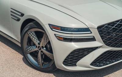 G80 스포츠 패키지는 외관에서부터 일반 모델과의 확연한 차이를 드러냅니다. 전면부에는 더블 레이어드 G-매트릭스 패턴이 적용된 방패 모양의 크레스트 그릴이 자리 잡아 더욱 강렬하고 스포티한 인상을 연출합니다. 기본 모델보다 더욱 확장된 에어 인테이크는 고성능 이미지를 부각하며, 차량의 역동성을 시각적으로 강조합니다. 후면부에는 강렬한 디자인의 디퓨저가 적용되어 하이 퍼포먼스 세단의 면모를 유감없이 발휘합니다. 여기에 3.5리터 가솔린 터보 모델을 선택하게 되면 단순한 외관 변화를 넘어선 실질적인 주행 성능 향상을 경험할 수 있습니다. 전자식 차동 제한 장치(E-LSD)는 코너링 시 구동력을 최적으로 배분하여 안정적인 주행을 돕고, 능동형 후륜 조향 시스템은 저속에서는 민첩한 회전을, 고속에서는 안정적인 차선 변경을 가능하게 합니다. 또한, 미쉐린 서머 타이어가 기본으로 적용되어 탁월한 접지력을 제공하며, 전용 스포츠 주행모드를 통해 운전자는 더욱 짜릿하고 직관적인 드라이빙의 즐거움을 만끽할 수 있습니다. 이러한 요소들은 제네시스 G80 페이스리프트 스포츠 패키지가 단순한 드레스업이 아닌, 진정한 주행 성능 향상을 위한 패키지임을 증명합니다.
