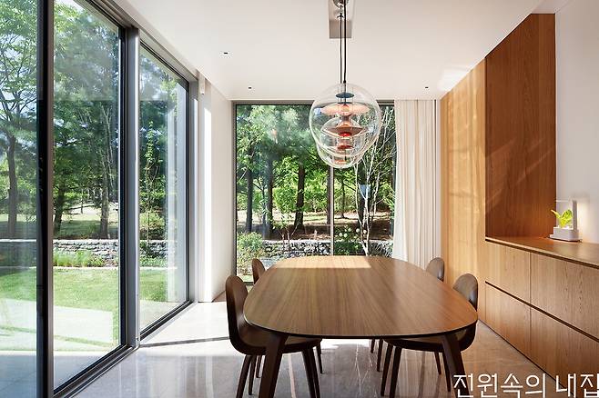 녹지를 향해 싱그럽게 열리고 트인 집에서는 공원이 마당이 되고, 햇살과 바람이 가뿐히 통과한다.