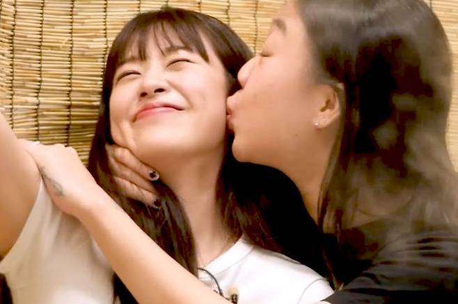 특히 이영지는 안유진의 이마에 입을 맞추는 등의 포즈를 취해 웃음을 자아냈죠.