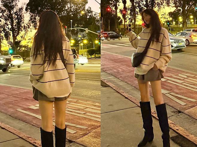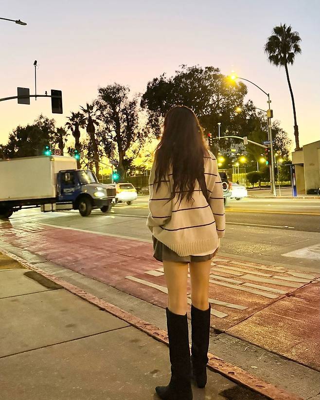 공개된 사진 속 이지아는 해가진 거리에 서서 포즈를 취하고 있다. 반바지에 오버핏 니트를 입고 무릎까지 오는 롱부츠를 매치했다. 긴 기럭지와 각선미가 감탄을 자아낸다.
