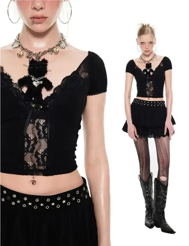 한소희처럼 매력적인 락시크 룩을 완성하고 싶다면, 원진스튜디오의 ‘V넥 레이스 퍼프 슬리브 탑’은 어떨까. 이 탑은 사랑스러운 레이스와 시스루 디자인이 매력적이고, 블랙 컬러가 시크함을 한껏 높여준다. 과감하게 단독으로 입어도 좋고, 셔츠나 다른 아이템과 레이어드해서 입으면 다채로운 스타일링이 가능하다. 레이스와 퍼프 소매가 주는 우아한 느낌과 블랙 컬러의 시크함이 조화를 이루어, 한소희처럼 다양한 악세사리와 믹스 매치하기에도 좋은 아이템이다. 탑 하나로도 다양한 룩을 연출할 수 있으며, 개성 있는 패션을 추구하는 이들에게 안성맞춤. 구매는 여기(https://tinyurl.com/y98rux2t).
