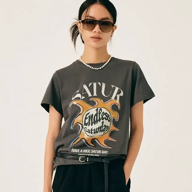 슬기를 손민수하고 싶다면 세터의 ‘썬 레트로 그래픽 반팔 티셔츠’가 좋겠다. 무더운 여름과 잘 어울리는 빈티지한 무드의 태양 그래픽이 그려져 있어 티셔츠 하나만으로도 포인트가 되니 말이다. 세미 크롭 기장으로 부담스럽거나 부해 보일 걱정이 없으며, 어깨 라인부터 넥 라인까지 바인딩 처리하여 늘어날 걱정 없이 데일리로 입을 수 있다. 여성용 세미크롭 기장부터 남성용 레귤러핏 사이즈까지 다양하니 활용도 높은 프린팅 티셔츠를 찾고 있다면 추천한다. 구매는 여기(https://tinyurl.com/3zpcbdx7).