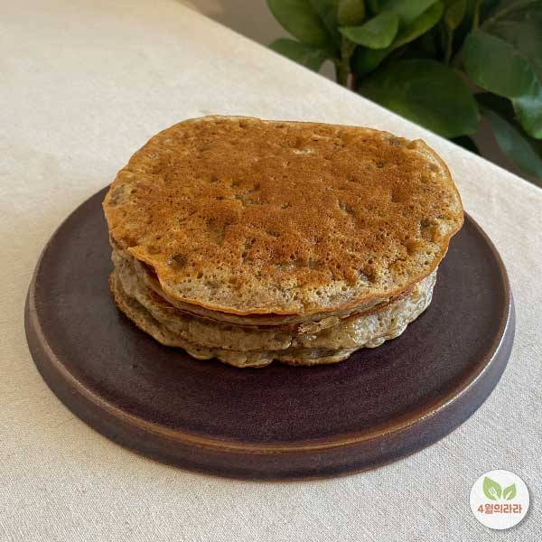 → 팬에 버터를 녹이고 약불에서 반죽을 올려 앞뒤로 2~3분씩 구운다. 기포가 올라오면 뒤집기.