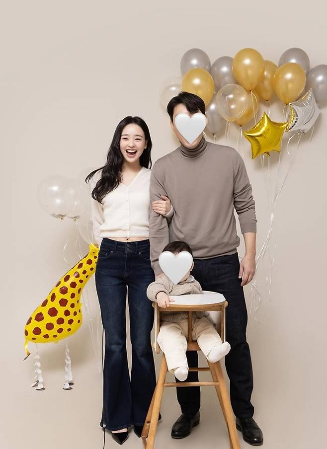 공개한 사진에서 손연재는 데님 팬츠에 크롭 니크 카디건, 남편은 터틀넥 티셔츠, 아들 또한 캐주얼한 스타일로 행복한 꾸안꾸 생일 패밀리룩을 완성했다.