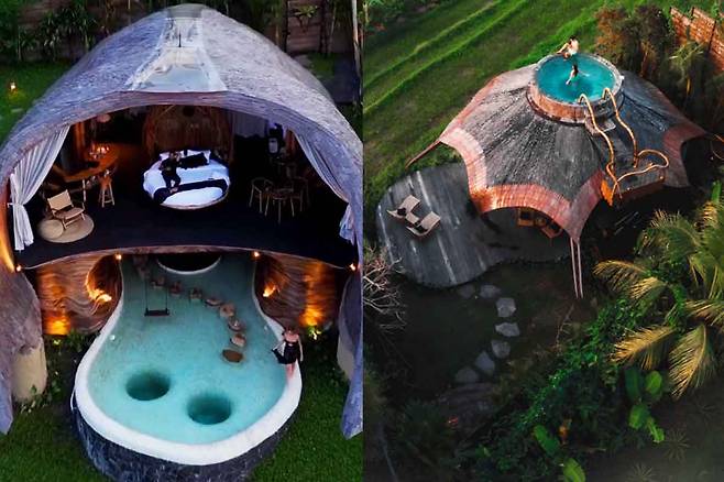 특징: 지붕 한가운데 수영장이 있는 독창적인 디자인.