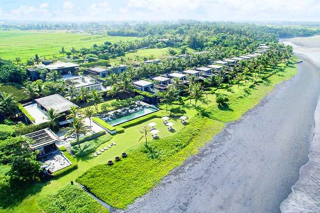 수리 발리는 발리의 럭셔리 리조트로, 블랙 샌드 비치 앞에 자리 잡고 있어 독특한 분위기를 자아냅니다.