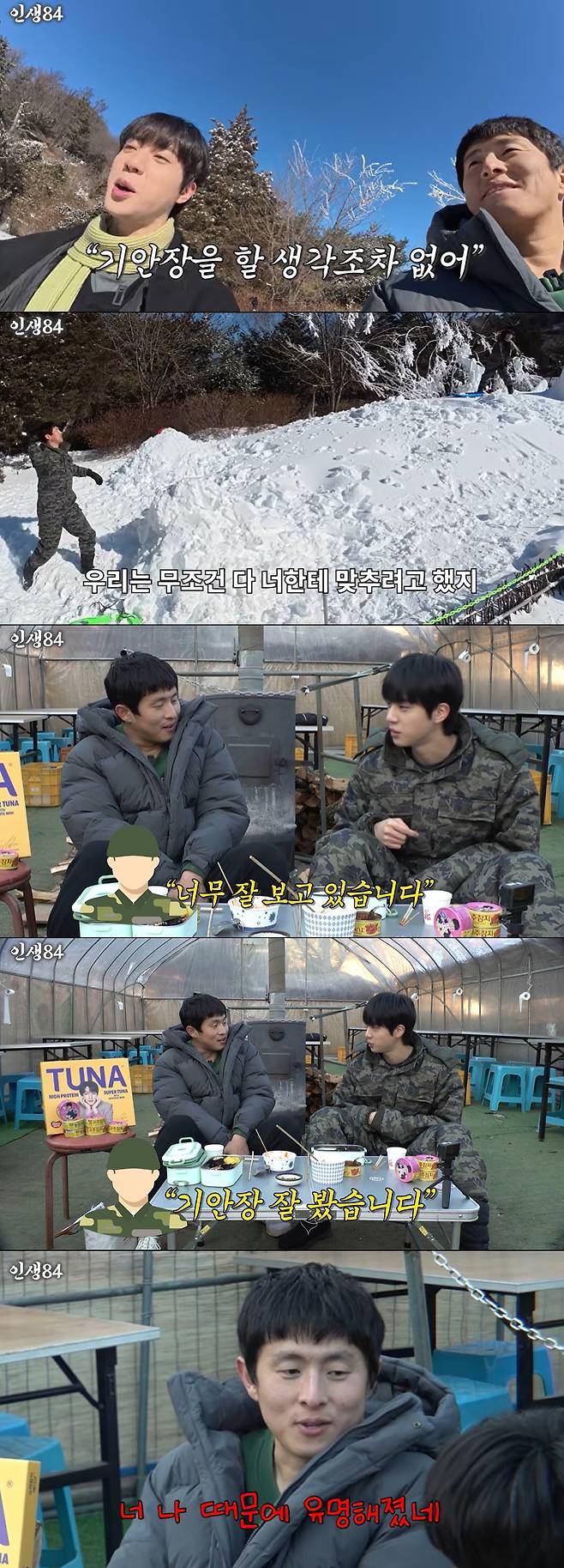 설원에서 두 사람은 자연스럽게 눈싸움을 했다. 진은 기안84에 눈을 던지며 "나 없이 '기안장'하니까 좋냐"고 불만을 표했고 기안84는 "네가 스케줄이 안 되는 걸. 우리는 무조건 너한테 다 맞추려고 했지"라고 해명했다. 하지만 진은 "거짓말. 날 버려?"라며 서운해했다.