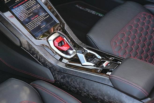 우라칸 에보 스파이더의 실내는 항공기 조종석을 연상케 하는 레이아웃이 적용돼 있다. 중앙에 위치한 큼직한 시동 버튼은 빨간 뚜껑을 열어야만 누를 수 있어 ‘출격’하는 듯한 긴장감을 준다. 창문 버튼, 주행 모드 조작부 등도 모두 개성 있게 배치돼, 일반 차량과는 완전히 다른 감각을 제공한다.