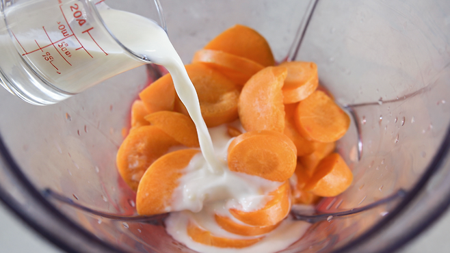 30초 이내 블렌딩, 당근 우유 주스 만들기